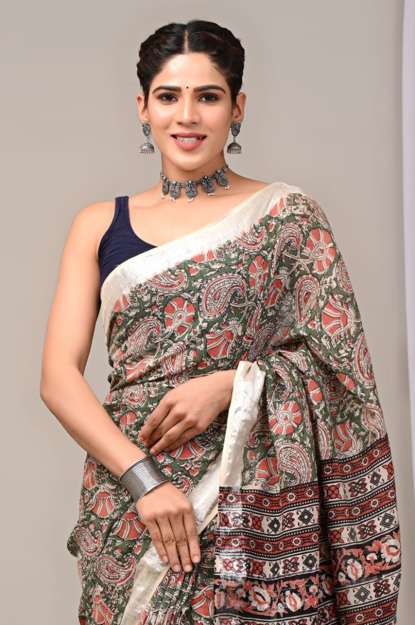 Kalamkari Elegance Linen Saree
