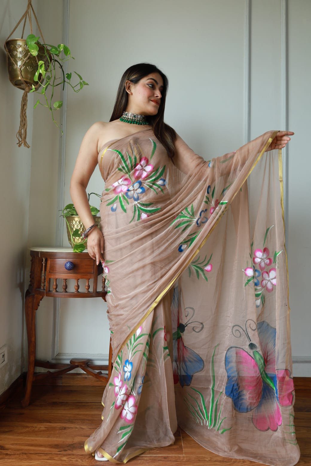 Exclusive Hand-Painted Chiffon saree