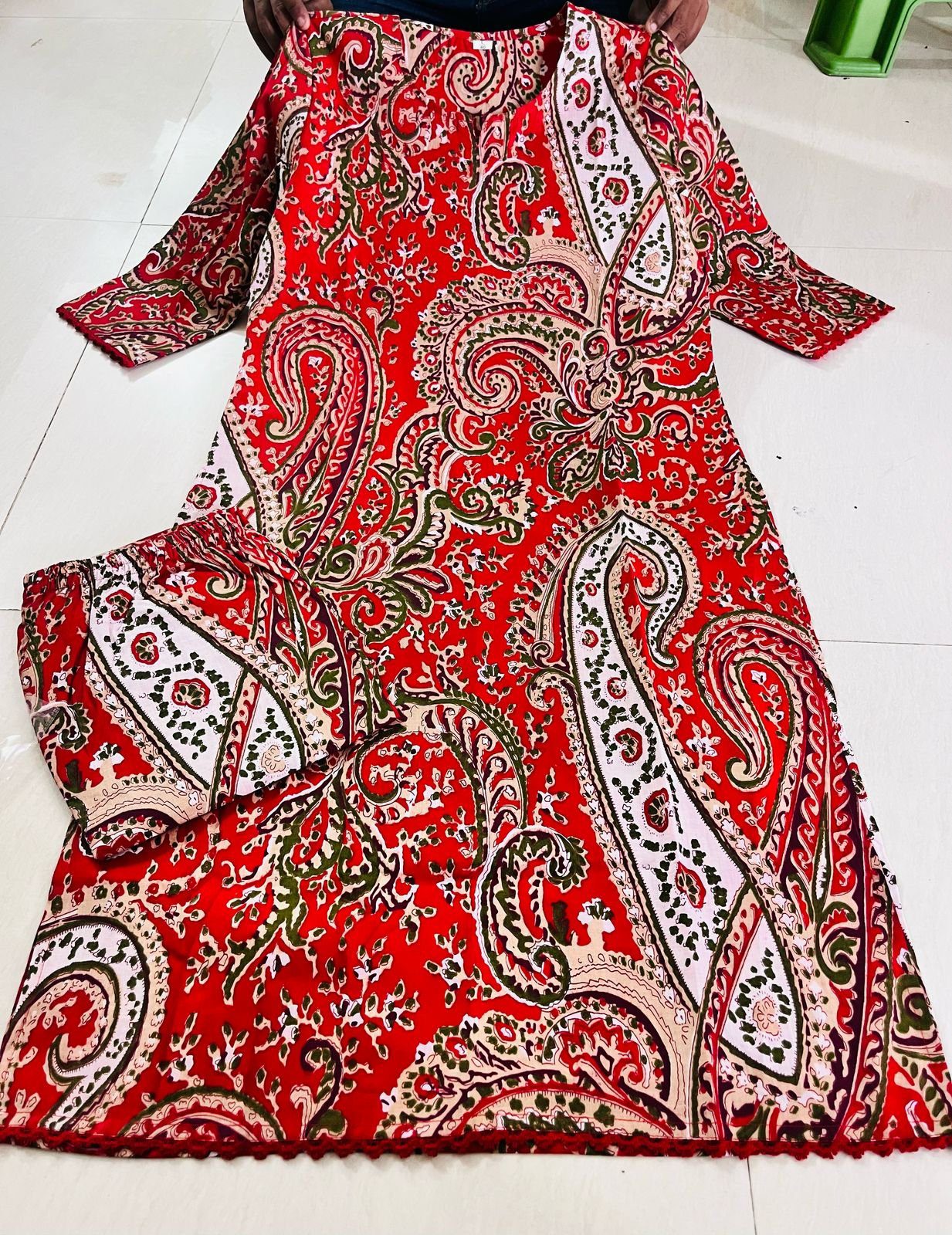 Discover the New Arrival Anarkali Kurta Set, an exquisite piece that redefines traditional wear. Made with authentic cotton fabric, the set offers breathable comfort suitable for any occasion. Its Sanganeri print reflects the richness of cultural craftsmanship while the flare and design provide a modern touch. Complete with long sleeves, a flattering cut, and a luxurious cotton malmal dupatta, this set transitions effortlessly from day to evening wear. Available in multiple sizes, it ensures inclusivity and elegance for all body types. Elevate your wardrobe with this stylish and timeless Anarkali kurta set.