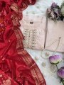Experience a blend of luxury and sophistication with the new Madhavi Luxury Silk Suit Set. This ensemble features a beautifully designed kurti with a matching pent, and a soft jequard dupatta. Each piece is crafted from pure silk, ensuring a graceful flow and softness, while the intricate premium embroidery adds an elegant touch. Available in sizes M to 3XL, this set fits any occasion from casual outings to special events, always keeping you comfortable and stylish. Included is a layered Moti Mala to enhance the look, making it a four-piece set that redefines premium quality.